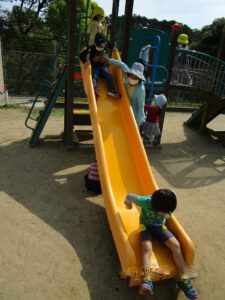 朝の準備が終わると、園庭に出て好きな遊びを見つける子ども達です。