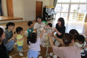 今週末、10月3日(金)は、最後の園庭開放日です。熊丸みつ子先生をお招きして、親子ふれあい遊びを予定しています。たくさん笑って、一緒に楽しい時間を過ごしましょう!多くのご参加をお待ちしています。
