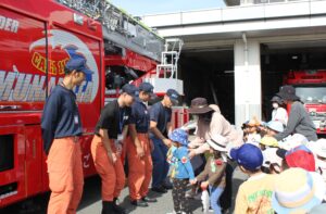 年少組は、郵便局・消防署へ。<郵便局> 「お仕事頑張ってください!」
