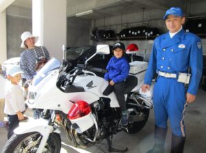 みんな順番に、白バイにも乗せてもらいました。かっこいい!