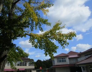園庭のイチョウの木の葉が、少しずつ色づき始めました。昨日と今日は、とても気持ちの良い秋の気候で、散歩に行ったり外でお弁当を食べるクラスが多くありました。