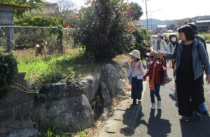 今日は、みかん山への遠足がありました。園から約2.5キロの道のりを親子で歩いて、みかん山に向かいます!