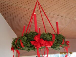 園長先生から、アドベントクランツのろうそく1本1本の意味を聞きました。