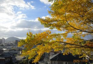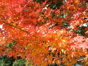 園内には自然がいっぱいです。園内のイチョウやモミジの葉がとても綺麗に色づいて、子どもたちが落葉拾いをしたり、ままごとに落葉を使ったりして遊んでいます。