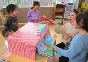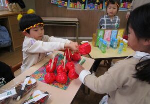 今日も、楽しそうに買い物する姿、大きな声で「いらっしゃいませ~!」と接客する姿が見られました。明日は『1日入園』で、来年度入園する小さなお友達をお迎えします。