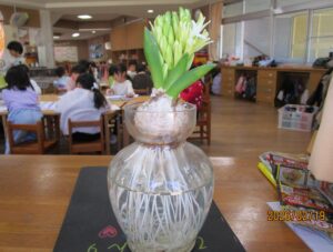 各クラスでは、水栽培していたヒヤシンスが咲き始めました!