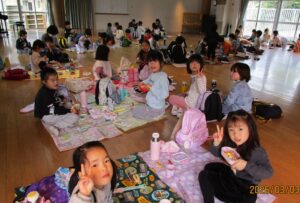 ゆり組とぶどう組で交流しながらのお弁当♡