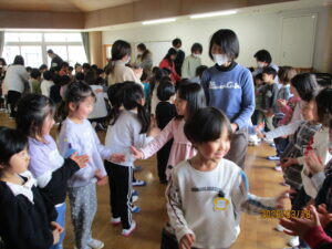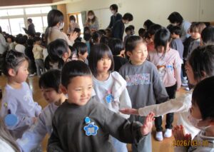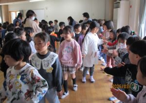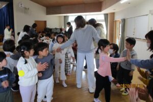 最後は、ひよこ組・いちご組・うさぎ組・年少組・年中組・全員で花道を作り、拍手やタッチで年長組さんを送り出しました。